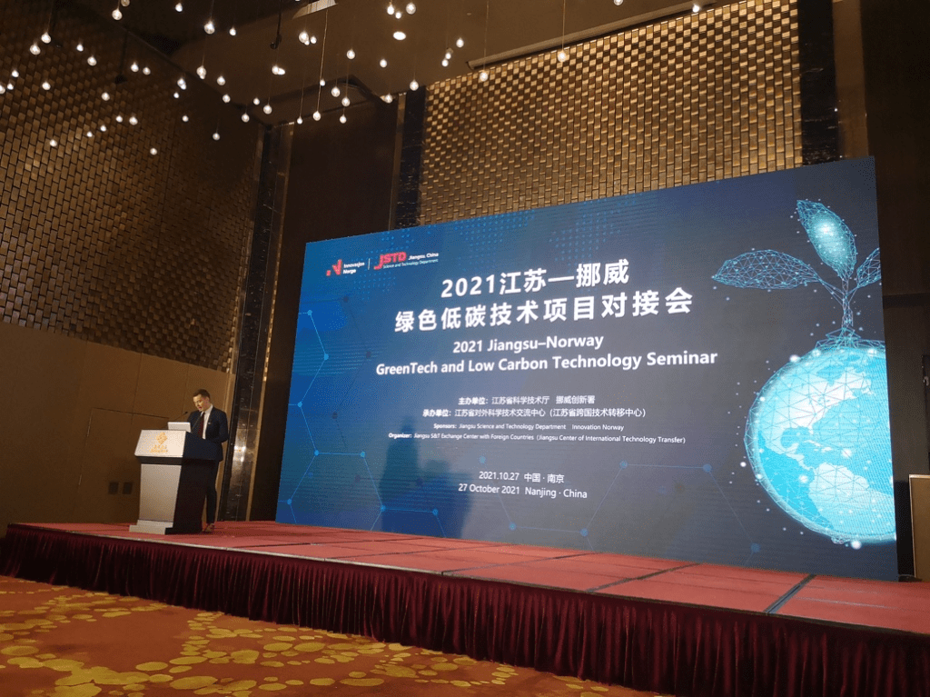 2021年10月27至28日,挪威水研究所(NIVA)应邀参加了由江苏省科技厅和挪威创新署在南京举办的“江苏–挪威绿色低碳技术项目对接会”及在苏州举办的“挪威绿色科技专场路演”活动。挪威王国驻华大使馆、江苏省科技厅和苏州工业园区管委会等单位领导出席活动并讲话。NIVA中国办公室技术部主任姜超向与会代表介绍了NIVA在海洋环境监测设备和海洋环境模拟预测领域的技术及案例,并与多家企业就项目合作进行了洽谈。